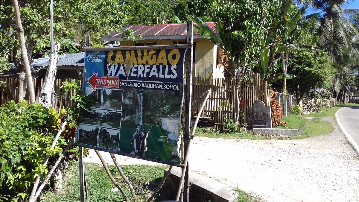 На карте его особо не было, спрашивали у местных как найти дорогу к нему. Нашли. Пошли вдоль желоба со струящейся водой (в Филиппинах часто водозабор делают на те же рисовые поля, делают отвод воды из водопада и она через прорези в бетонном желобе попадает на плантации, т.е. если идти против течения вдоль желоба - однозначно упрешься в водопад.)