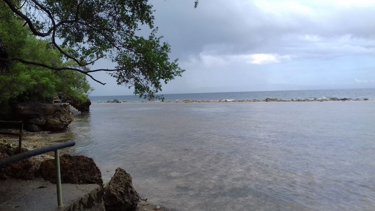 На острове встречались указатели на тот или иной пляж. Мы заезжали на пляж, фотографировали и уезжали. Отлив на плаже, где вместо песочка - коралл- зрелище удручающее.