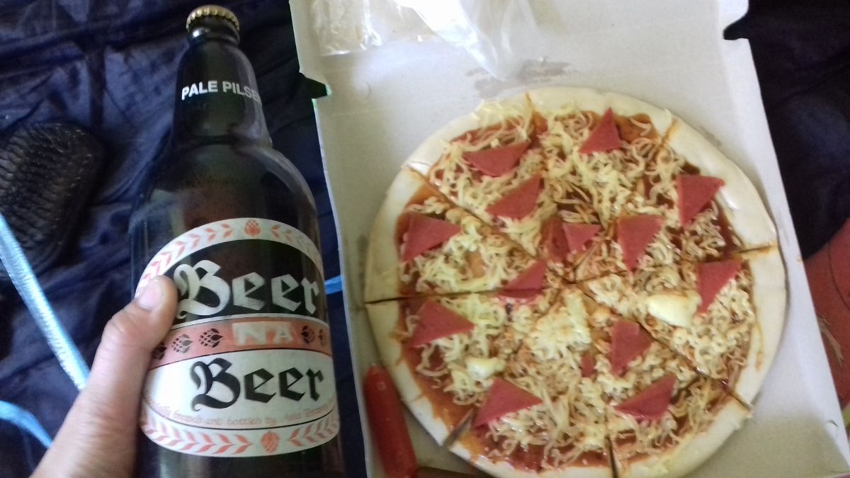 Около отеля купили пиццу под пиво. Своеобразная она, конечно. Зато стоила 69песо за штуку.