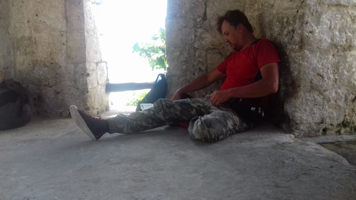 Паша уже был злой как черт. Только что, он мне говорил, что может хоть 10 км пройти с таким небольшим рюкзаком. Но, когда мы прошли эти 10км, настроение у него уже не было такое радужное.