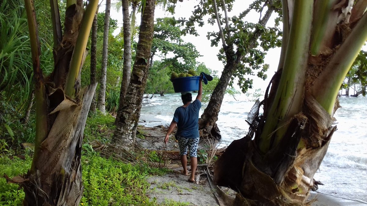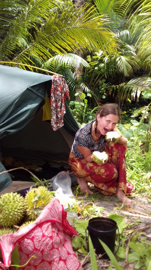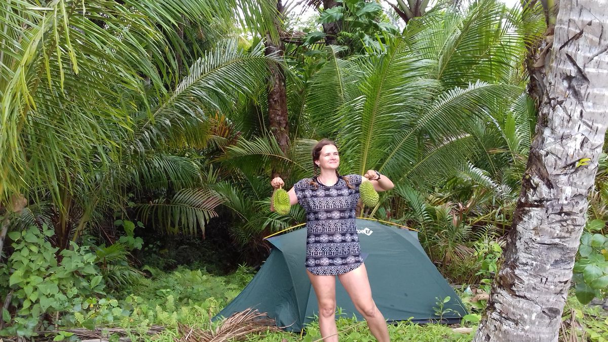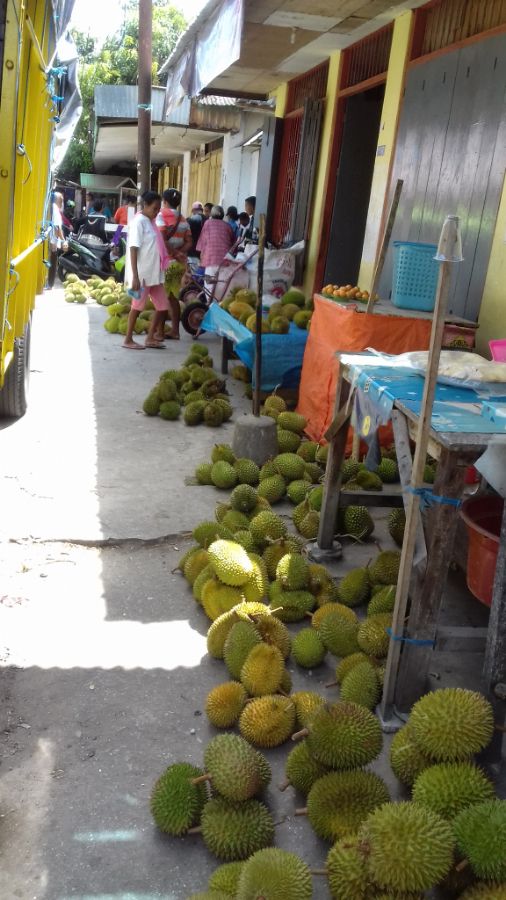 Собрали палатку, пришли обратно в деревню. На пристани купили дуриан за 10.000, сели в маршрутку за 15.000 и уехали в деревню Сапаруа.