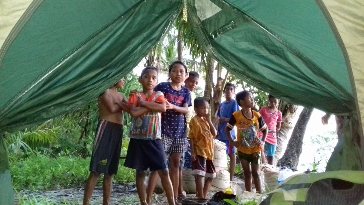 Им всем было интересно - как это жить в палатке? Паша пытался на смеси индонезийского и английского им объяснить, что мы уж не до конца бомжи, что на Родине у нас есть свой дом, а палатку берем на время путешествий. Показали, что у нас есть коврики, спальник, и что вообще у нас все продумано в плане быта.