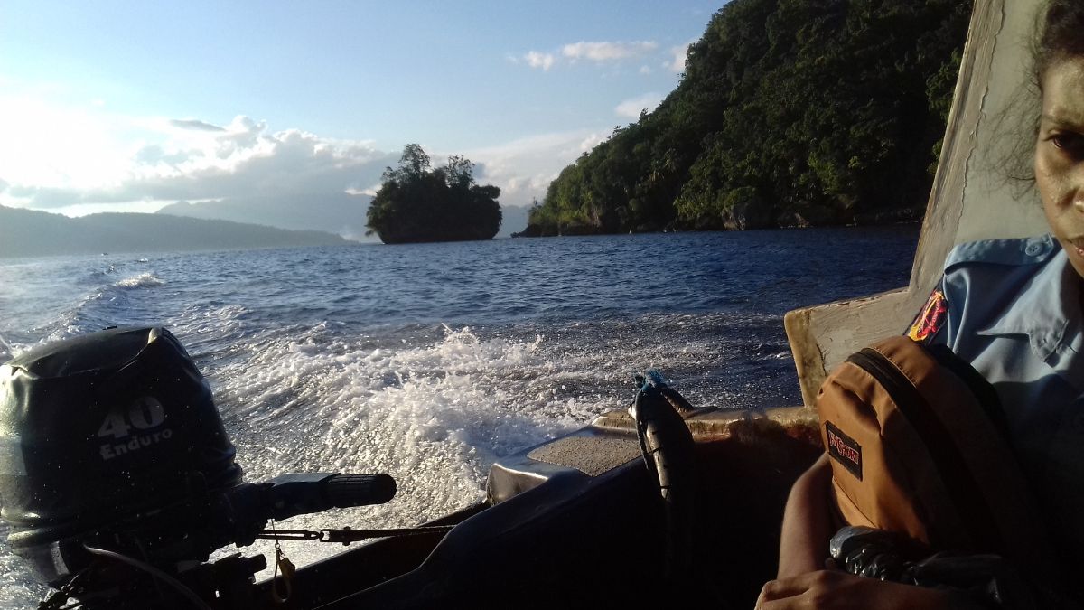 На катере шли со стороны открытого океана обходя остров. Так что волна была бодрая, катер скакал с волны на волну, я отбивала себе жопу на скамейке, надеясь, что катер все же не развалится.