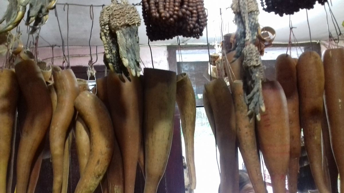 Продавались ожерелья с засушенными крокодильими лапками.