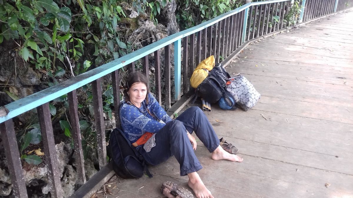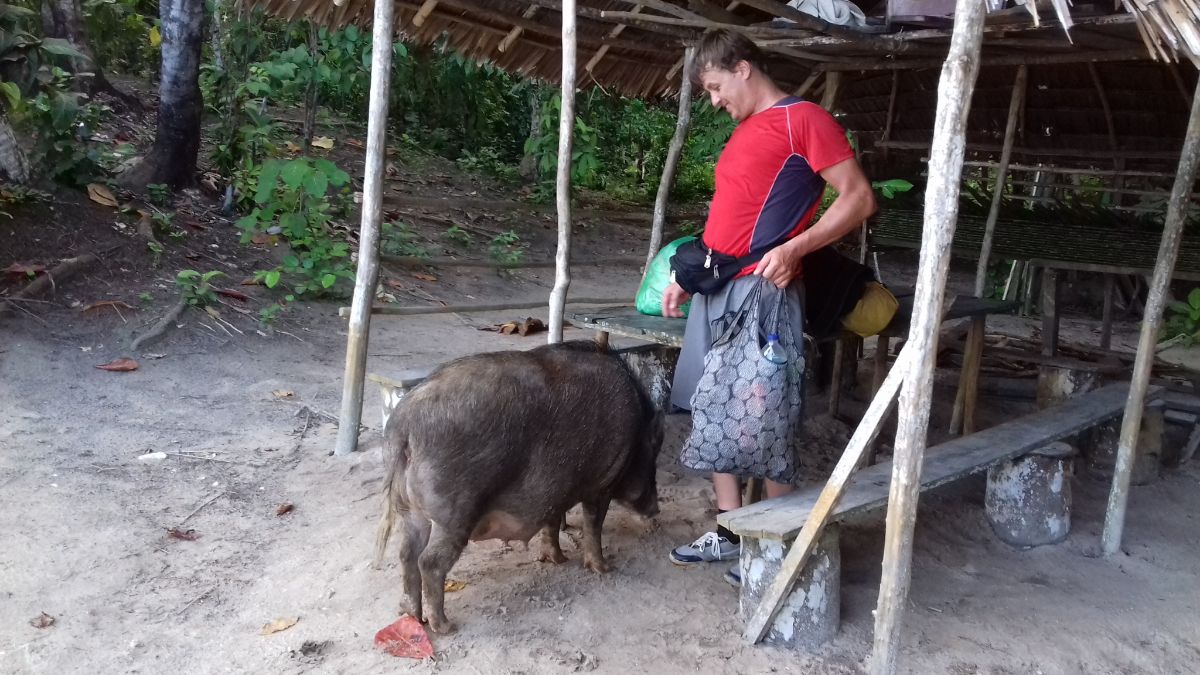 Чалимся у того же пирса, с которого начали свой трип. Паша сворачивает лодку, я вытрясаю все вещи из насквозь промокших рюкзаков, выкидываю совсем убитое водой, что можно высушить - раскладываю на солнце. Местные нами уже не так интересуются как в первый раз. Находим кокос, разрубаем, выпиваем. Мякоть кокоса не лезет. Можно только молодую есть, старую жевать неинтересно.