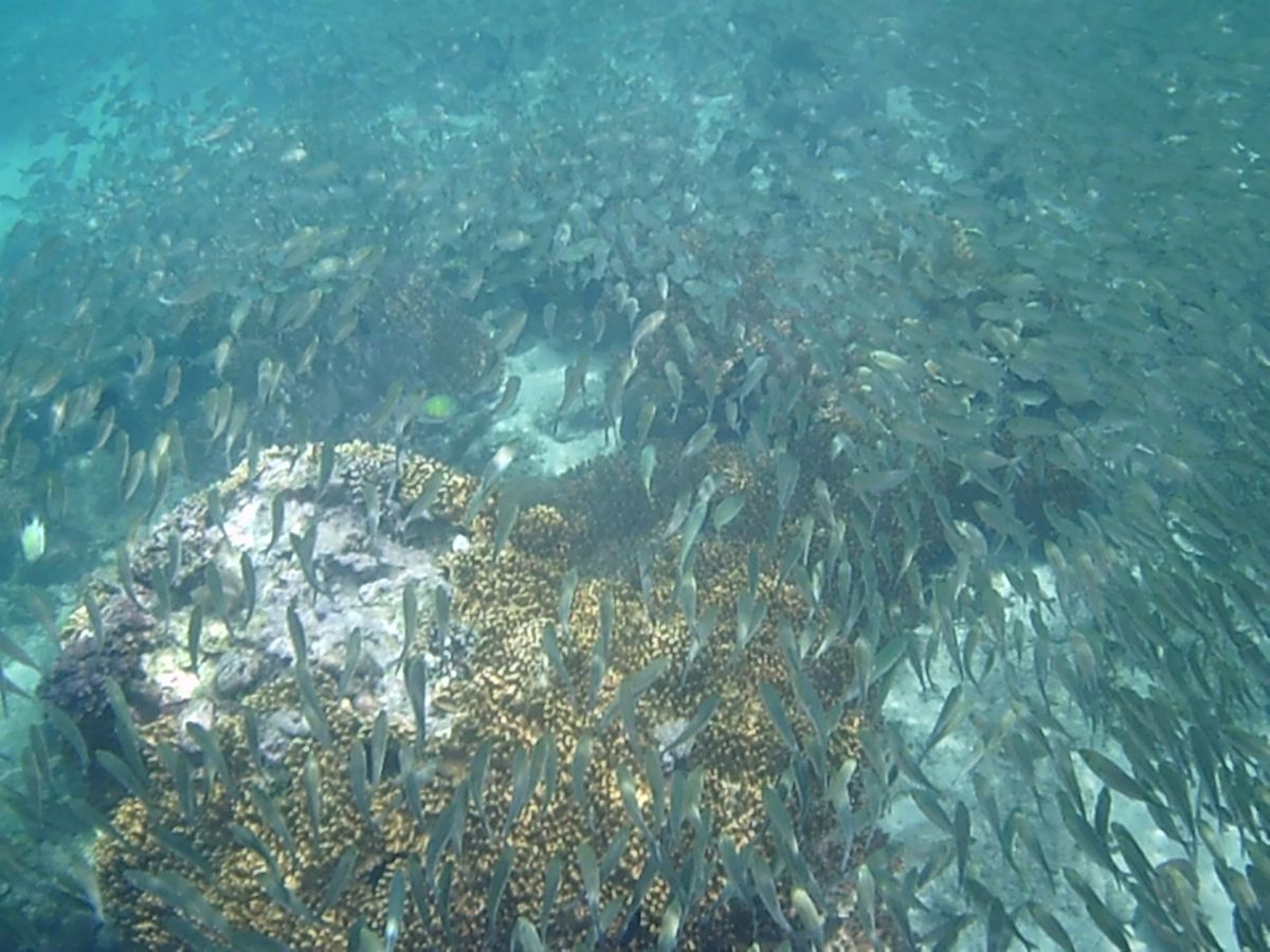 У пирса стоял косяк рыбы. Вы когда-нибудь плавали в косяке? Это тысячи и тысячи достаточно крупных рыбок размером с мою ладонь. И они все как одна. Синхронно двигаются. Ты ныряешь в самую гущу рыб - а они под тобой раздвигаются.