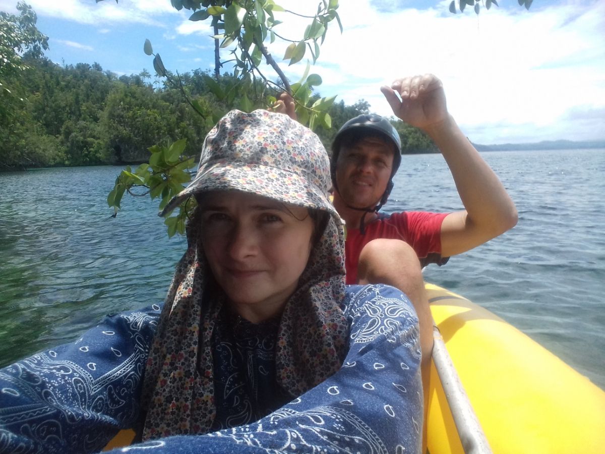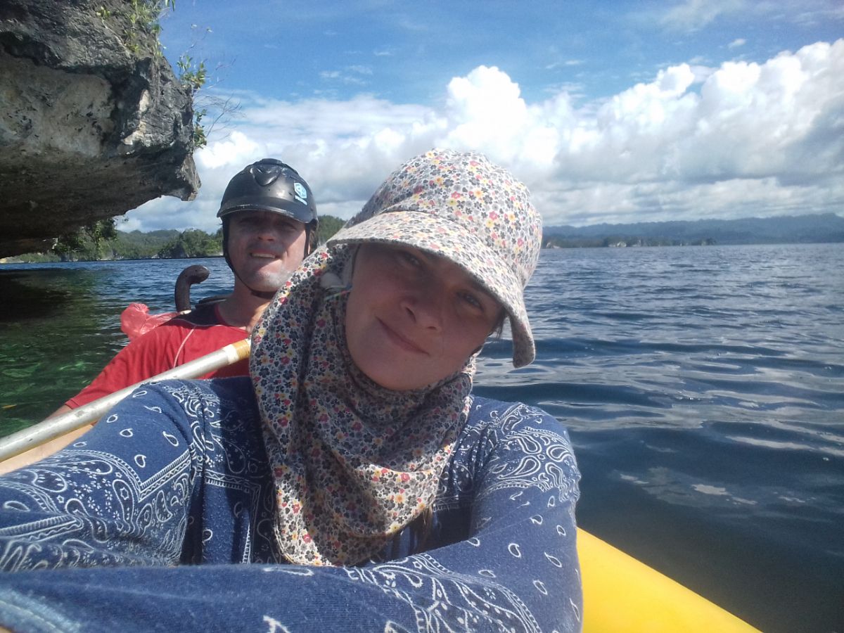 Вообще мы часто что-то забываем на стоянках. На дуриановом Сапаруа я оставила очки. Вчера Пашка на каком-то острове оставил свою любимую каску-кепку, которую купил во Вьетнаме. Поэтому ему приходится сегодня грести в моей панамке.