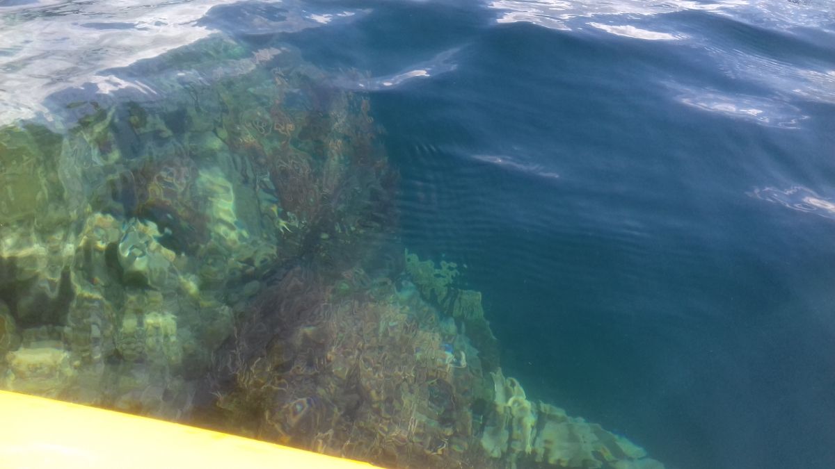 Первые 2.5 км еще было ничего, но потом пошла жуткая болтанка на волнах около этого "бутылочного горлышка". Там уже был с одной стороны открытый океан, волна неслабая поднималась. Одно хорошо - волны были либо попутные, либо слегка боковые, лодку не сильно захлестывало водой. Хотя волны были по полметра уже.