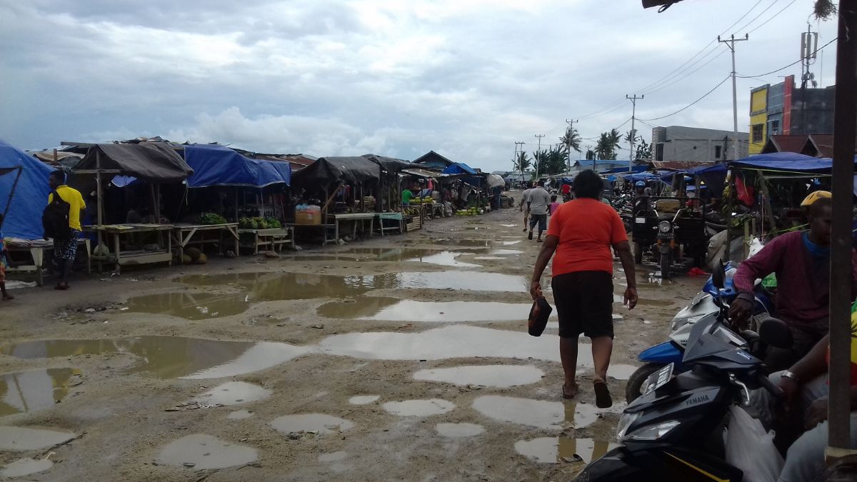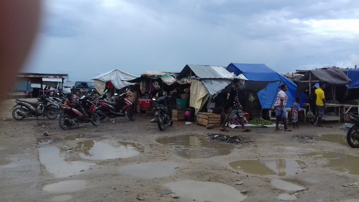 Маршрутки здесь страшно неудобные. И в отличии от амбонских маршруток, куда помещается 12 человек, в эти можно было вбить максимум 10. Тут была неудобная широкая дверь, открываешь ее и видишь 2 сиденья. Сзади длинное, на 4 худых человека, и спереди на 3 худых. Ну и у водителя слева на 2 тощих. Так вот. Около водителя сидела папуаска с младенцем, разговаривающая на английском. Она нам показала где можно отель найти, показала порт, сказала, что в 8.00 и в 14.00 уходит Марина Экспресс, что это самая дешевая лодка.