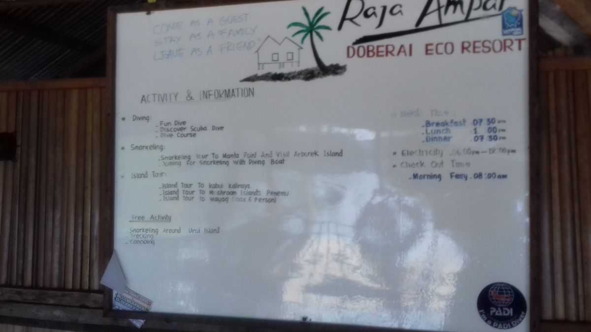 Через полчаса он вернулся с круглыми от удивления, глазами. Меньше чем за 500.000 рупий отеля он не нашел. Времени было 13.30. В принципе, можно рвануть до пирса и успеть на лодку до Соронга.