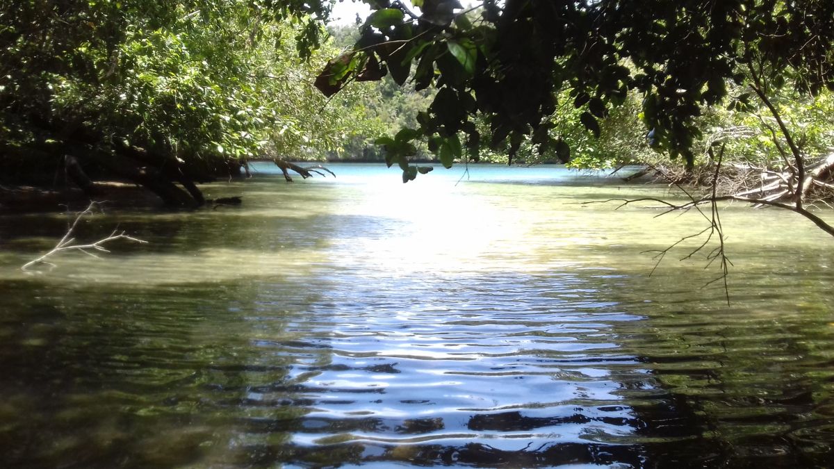 Чалимся под "гриб", я держусь руками за лиану, чтоб лодку не унесло, Паша пока купается, отдыхает, подгоняет весла, чтоб не болтались.