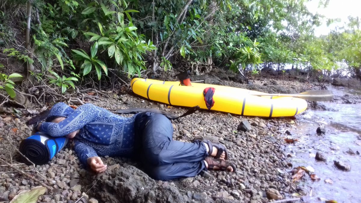 Ночью становится прохладно, залезаю под саронг и вижу невиданную доселе картину - Паша лежит укутанный в спальник. На экваторе! На высоте 1 метр н.у.м.