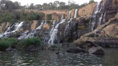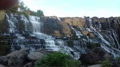 На закате мы доехали до водопада Pongour. Он стоил вообще смешные деньги -10.000 с человека+3.000 парковка= 59р. И по зрелищности был самым интересным из тех, которые мы видели за все время во Вьетнаме.