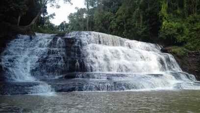 Заехали к водопаду БоХо. Отдали по 47.000 с носа, прошли километр вверх по дороге, по камням вдоль русла. Мне каждый шаг сделать -боль. А тут карабкаться надо еще.