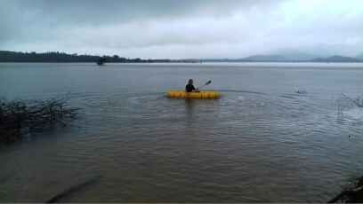 Двинули. Дождь то переставал, то опять шел с удвоенной силой. Т.к. выехали поздно, проехать получилось небольшое расстояние. В 18.00 становится темно уже, ставиться надо по светлу. Паша выбрал остановиться у водохранилища Hinh Reserevoir. Заодно и лодку опробовать.