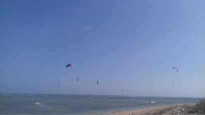 Едем дальше. По пути заехали на курорт для кайтеров, посидели с пивом на берегу, повтыкали на мастеров и начинающих.